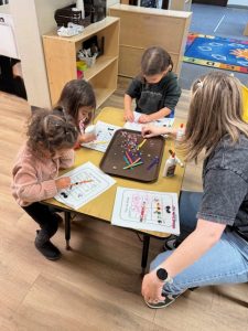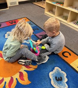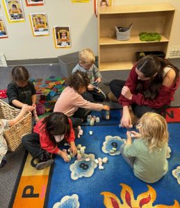 The work in this classroom goes more in depth preparing the child for not only successful every day living. This classroom also prepares both a winter and spring program for parents, friends and families. We work hard to ensure the work aligns with the state kindergarten standards to help the child transition into grade school.